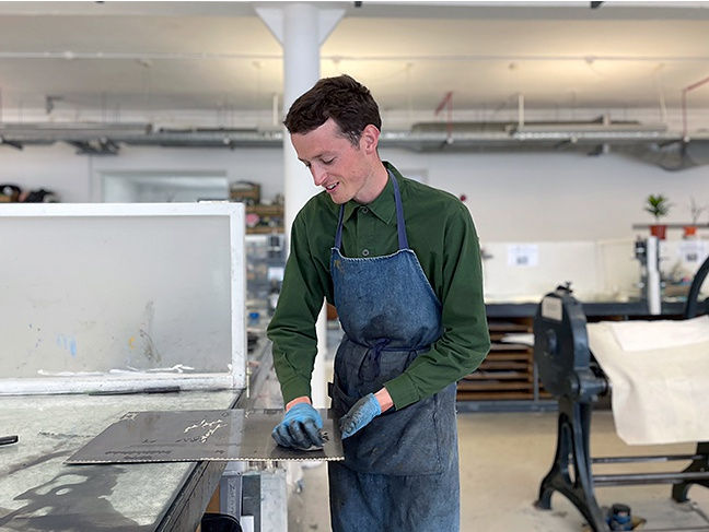 Tom Matthews is an artist and designer originally from North-East England, living and working in Glasgow. He is a graduate of Sheffield School of Architecture and has experience working as a designer between the intersections of architecture, visual design and art. As a printmaker, he has exhibited at the Royal Scottish Academy Annual Show, Woolwich Contemporary Print Fair, The Alchemy Experiment, and a joint show, 'Scar Tissue', with photographer Gaston Welisch as part of the 2023 Archifringe Festival.